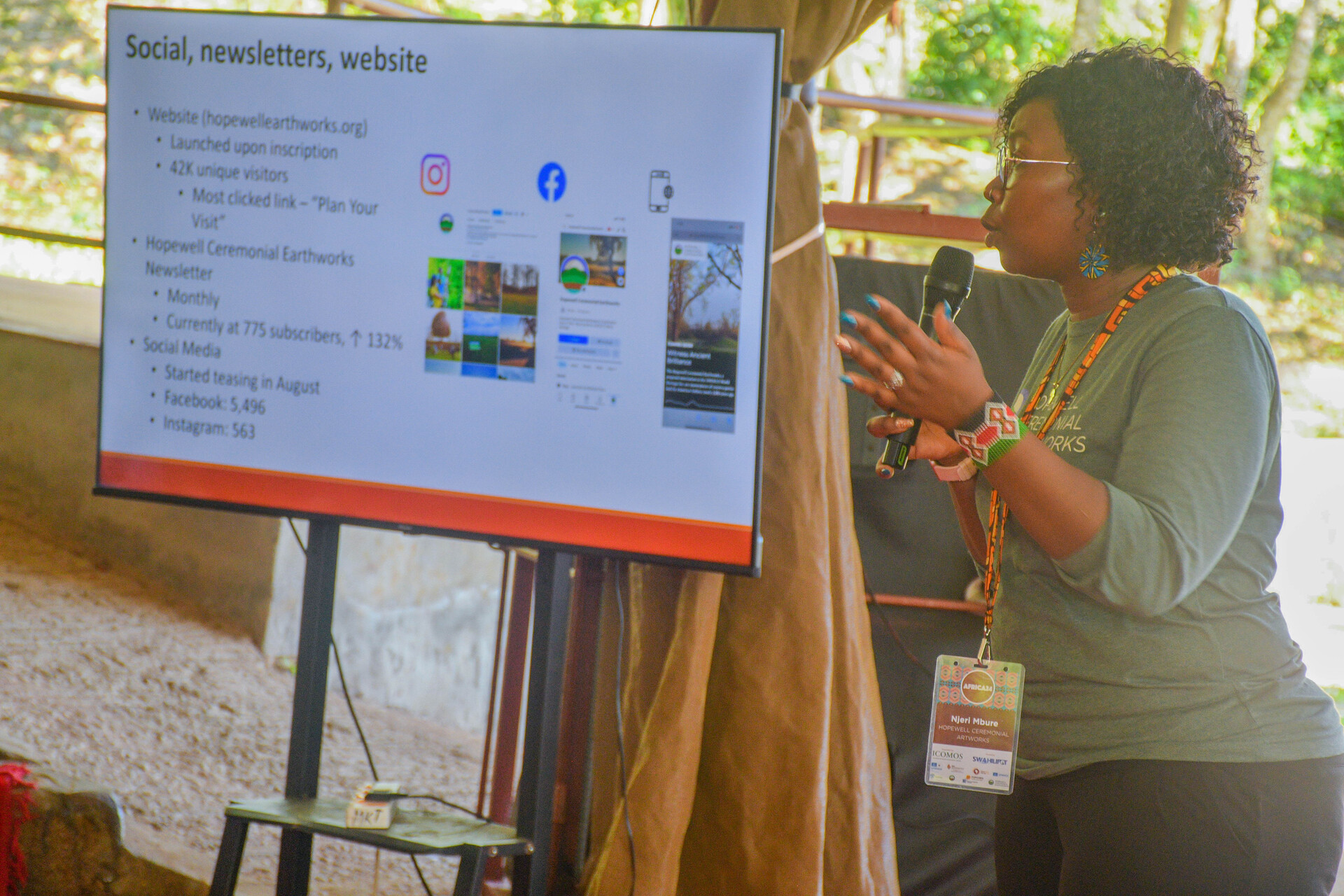 It was followed by presentations by the partners, namely Masanori Nagaoka (Programme Specialist for Culture, UNESCO ROEA), Precious Mothiba (Partnerships Officer, AWHF), Ivan Henares (SG Philippines UNESCO NATCOM), Emily Njeru (Kenya UNESCO NATCOM), Njeri Mbure (Marketing Manager, Hopewell Ceremonial Earthworks) and several presentations on African World Heritage sites (including a presentation on Sukur Cultural Landscapes by Ishanlosen Odiaua, outgoing President of ICOMOS Advisory Committee).